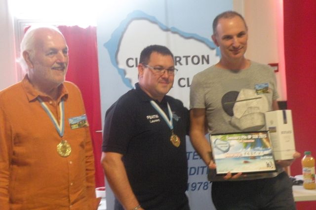 remise du trophée de l'expédition de l'année à  F6EXV pour Thierry F6CUK et son activité depuis FT8WW (photo F6AJA)