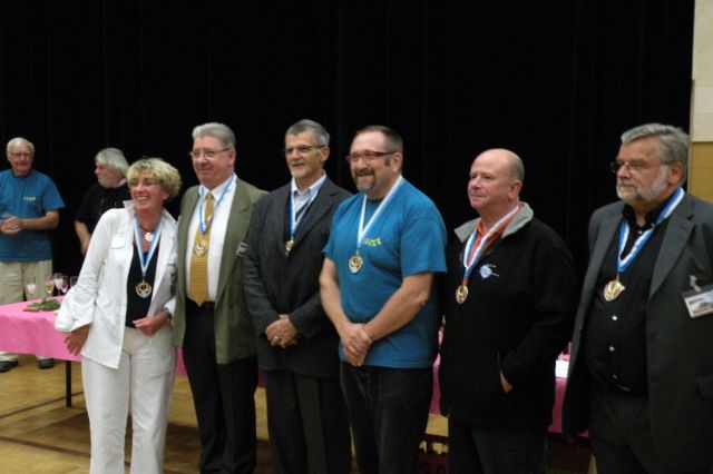Les médaillés présents de cette année: Micheline XYL F9IE, Jean-Pierre F5AHO, Norbert F6AXX, Jean-Marc F8IXZ, Francis F6BLP, René F5LGE